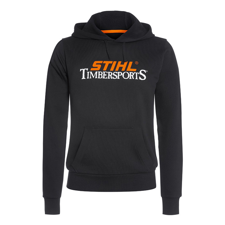 Ana e errët ka një tërheqje të veçantë – dhe kjo bluzë me kapuç e vërteton këtë. Pavarësisht portokallisë rreth qafës dhe logos “STIHL TIMBERSPORT” që dallohet në gjoks, bluza prej pambuku përfaqëson të zezën që nuk del nga moda.