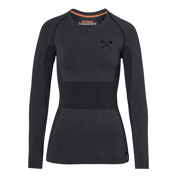 Duket bukur dhe qëndron pas trupit. Bluza jonë gri me mëngë të gjata ofron veshjen perfekte.Logo e “STIHL TIMBERSPORT” në pjesën e pasme dhe sëpatat në pjesën e kraharorit, e bëjnë këtë veshje partnerin perfekt për t’u stërvitur.