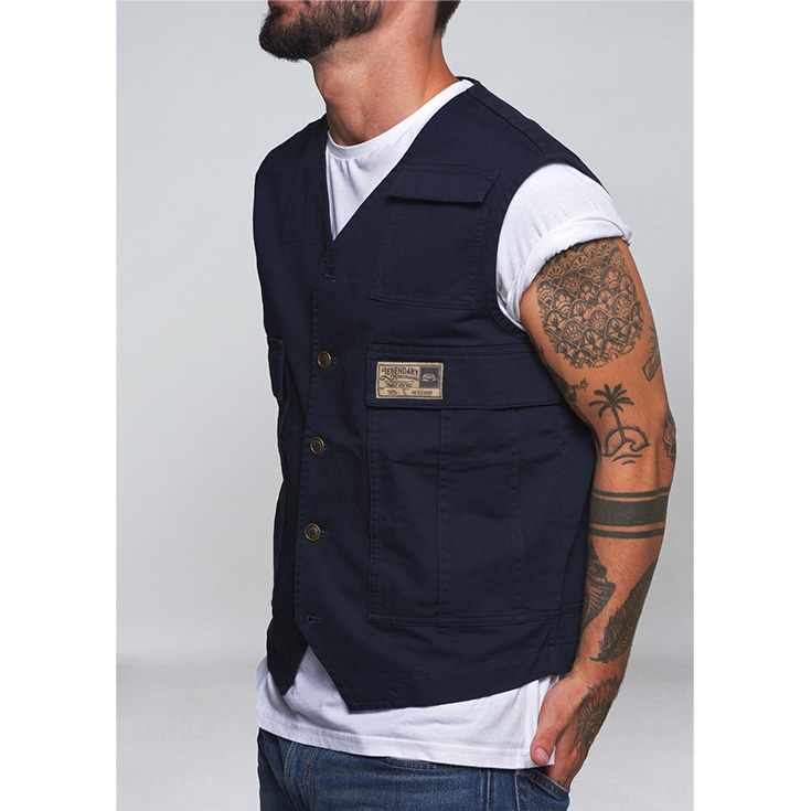 Ky jelek në ngjyrë blu të errët ka kopsa të cilat do ju dërgojnë direkt në rrënjët e stiit të STIHL. I kombinuar me një bluzë të thjeshtë me mëngë të shkurtra apo të gjata, ky jelek do të kthehet shumë shpejt në një pjesë esenciale të garderobës suaj. Xhepat e endur në pjesët anësore dhe në pjesën e kraharorit duken jo vetëm shumë bukur, por janë gjithashtu praktike, ndërkohë që etiketat karakteristike e bëjnë edhe më speciale si veshje.