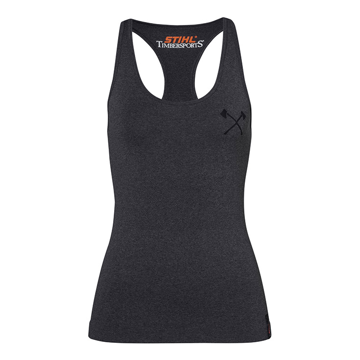 Duket bukur! Kjo kanotierë, e thurur në mënyrë të pandërprerë, pas trupit tuaj, krijon përputhjen perfekte me streçet tona. Logoja “STIHL TIMBERSPORTS” në pjesën e pasme dhe sëpatat në pjesën e kraharorit, e bëjnë këtë veshje tejet speciale.