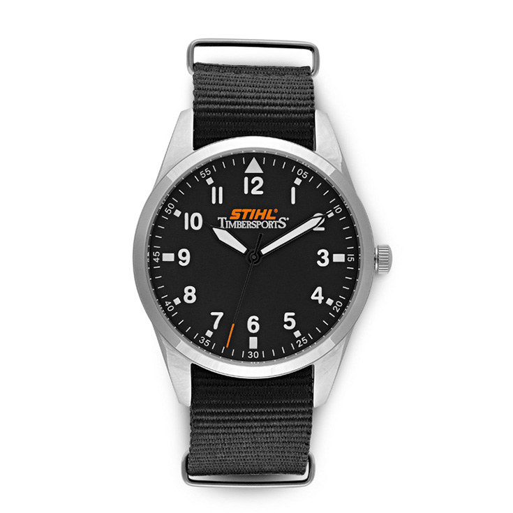 Kjo orë dore me dizajnin e STIHL TIMBERSPORTS është e domosdoshme për aktivitete në natyrë. Me bazament prej çeliku të pa-ndryshkshëm, rripa najloni dhe xham të përbërë prej Crystex- i të përforcuar, e bëjnë këtë orë sportive veçanërisht të fortë. Dizajni i saj minimal do të thotë se mund të vishet gjithashtu si një orë klasike për meshkuj. Prodhuar prej Jacques Lemans.