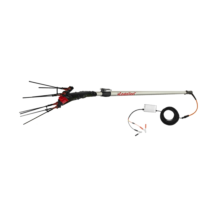 Vjelëse elektrike profesionale e ullirit me krehër të dyfishtë me lëvizje anësore të kundërta, e përshtatshme për çdo lloj fruti dhe bime. Këmbët e bërë nga karboni i pultruduar janë fleksibël dhe kanë një gjatësi prej 35 cm, duke lejuar korrjen deri në brendësi të bimës. Shtylla teleskopike prej alumini. disponueshme ne dy permasa. VERTIGO 12V furnizohet me një kabllo energjie të papërshkueshme nga uji 15 m dhe dy siguresa sigurie.